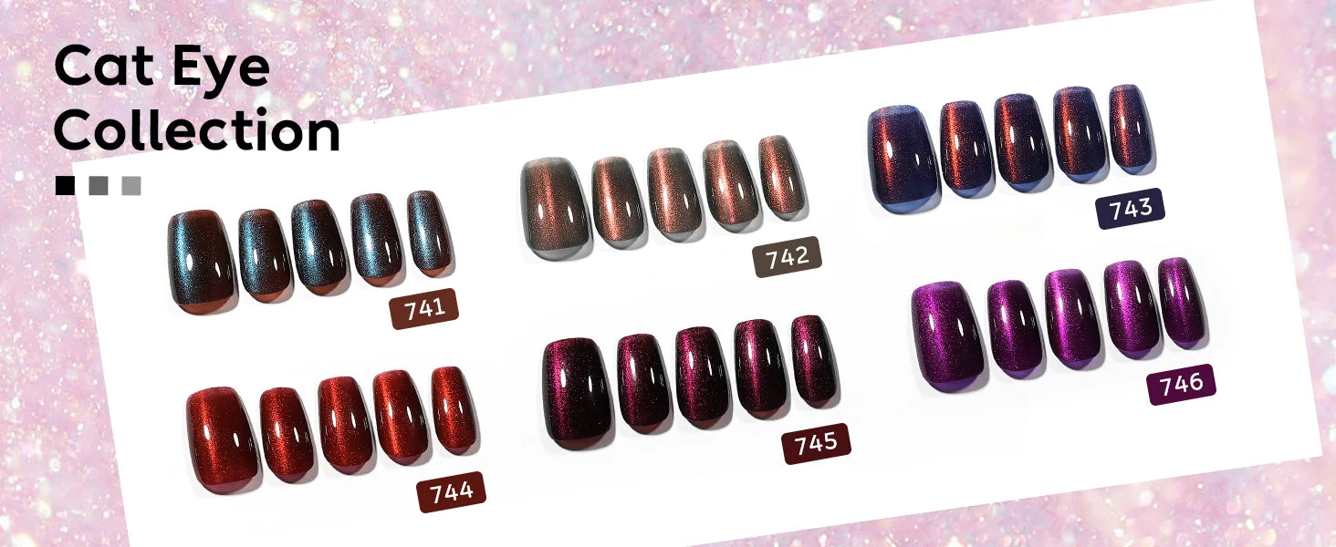 Kit 72 (SET6-72_10ML) features A jewel-tone cat eye palette with a multi-dimensional magnetic effect, designed for bold statement nails that captivate from every angle.